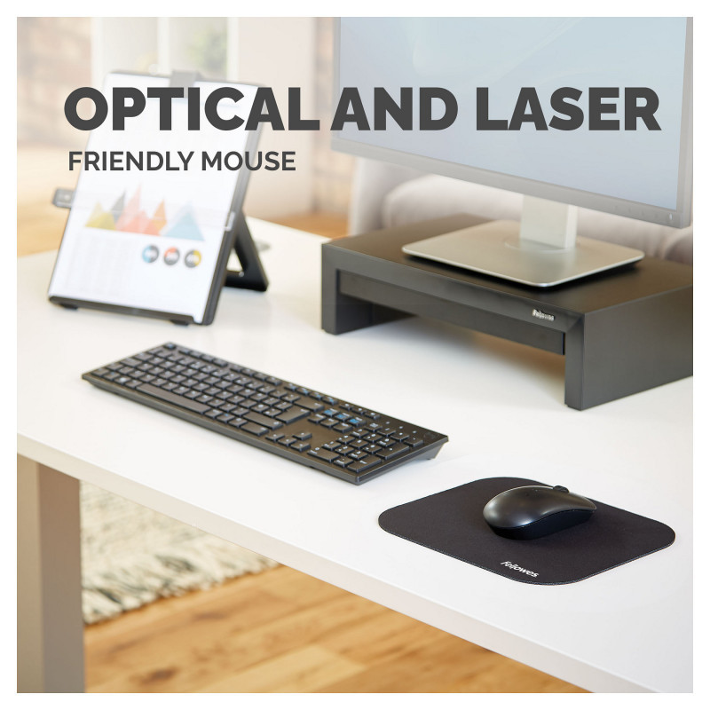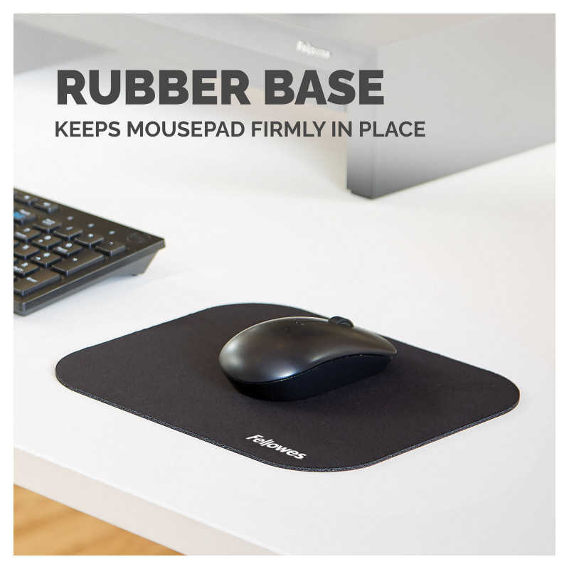 "Fellowes Premium Mousepad - Black. Width: -232 mm, Depth: 199 mm. Product colour: Black, Surface coloration: Monochromatic, Material: Polyester, Rubber"\n"Mouse Pad - Black"