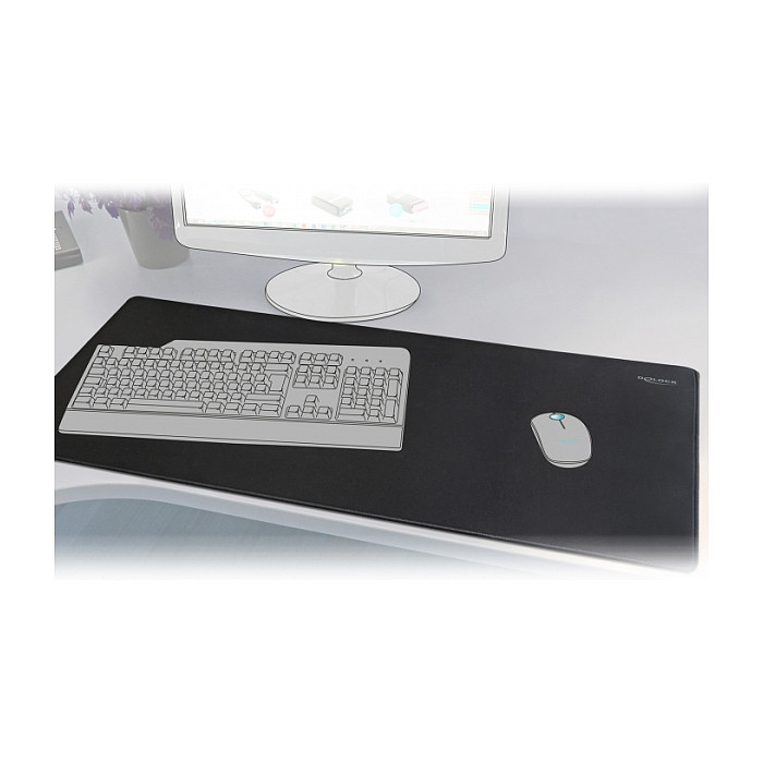"DeLOCK 12027. Width: 900 mm, Depth: 500 mm. Product colour: Black, Surface coloration: Monochromatic, Non-slip base, Gaming mouse pad"\n"This high quality mouse pad by Delock is most suitable for gaming, home or office applications. Due to its special size, this mouse pad offers enough space to place a keyboard and mouse and still provides room for working and playing with a mouse. Hence the mouse pad can also be used as desk pad to create an overall tidy impression.