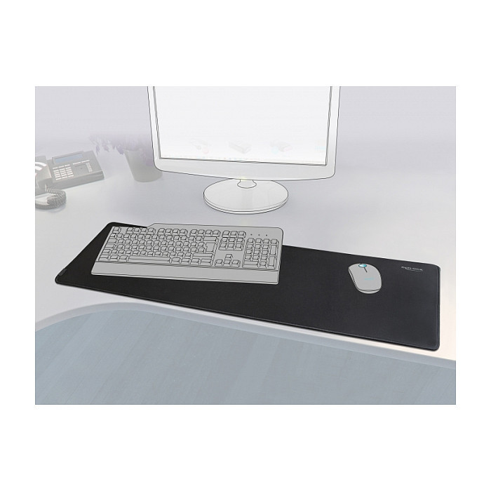 "DeLOCK 12557. Width: 915 mm, Depth: 280 mm. Product colour: Black, Surface coloration: Monochromatic, Non-slip base, Gaming mouse pad"\n"This high quality mouse pad by Delock is most suitable for gaming, home or office applications. Due to its special size, this mouse pad offers enough space to place a keyboard and mouse and still provides room for working and playing with a mouse. The surface of the mouse pad is designed to react water-repellent to liquid and can be cleaned easily. Furthermore it supports speed and precision of the mouse tracking, which is very important in fields of gaming. The black edge stitching prevents fraying."