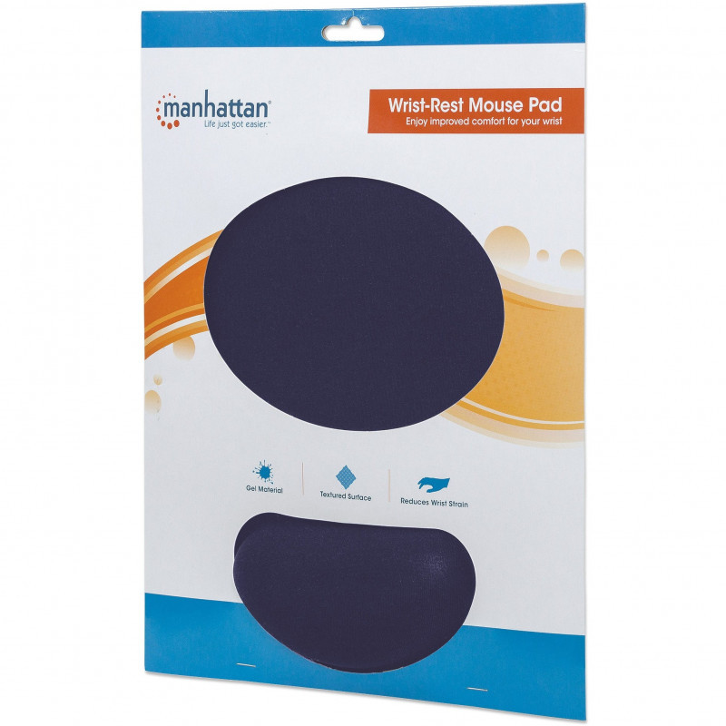 "Manhattan Wrist Gel Support Pad and Mouse Mat, Blue, 241 × 203 × 40 mm, non slip base, Lifetime Warranty, Card Retail Packaging. Width: 203 mm, Depth: 241.2 mm. Product colour: Blue, Surface coloration: Monochromatic, Wrist rest, Non-slip base, Gaming mouse pad"\n"If you use a mouse with your computer, the Manhattan Wrist-Rest Mouse Pad provides the comfort you need to work and play better. The pad's soft raised surface uses a gel material to support your wrist and prevent fatigue. Its non-slip base keeps it in place on your desk. And the pad itself protects your desk's surface so you don't scratch its finish as you move the mouse where you need it. The Manhattan Wrist-Rest Mouse Pad helps you keep working at any computer task and makes any game more enjoyable."