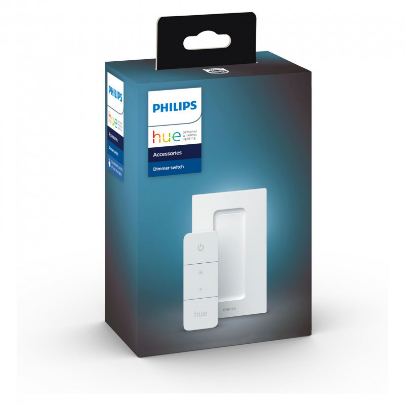 "Philips Dimmer Switch (latest model). Type: Dimmer & switch, Networking standards: IEEE 802.15.4, Hue dimmer switch International Protection (IP) code: IP20. Case design: External, Control type: Buttons, Product colour: White. Battery type: CR2032. Width: 80 mm, Depth: 15 mm, Height: 125 mm. Package width: 90 mm, Package depth: 58 mm, Package height: 170 mm"\n