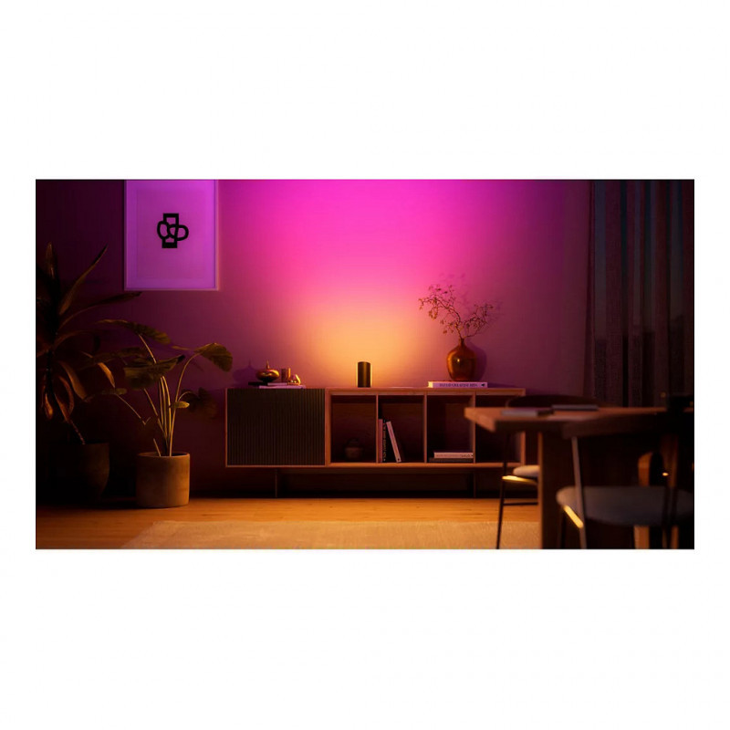 "Philips Hue White and colour ambience Hue Play wall washer. Type: Smart table lamp, Interface: Bluetooth/Zigbee, Product colour: Black. Input voltage: 100–240, AC input voltage: 100 - 240 V. Cable length: 2 m, Width: 76 mm, Depth: 91 mm. Package type: Box, Package width: 1850 mm, Package depth: 2900 mm. Quantity per pack: 2 pc(s)"\n"Easy smart lighting