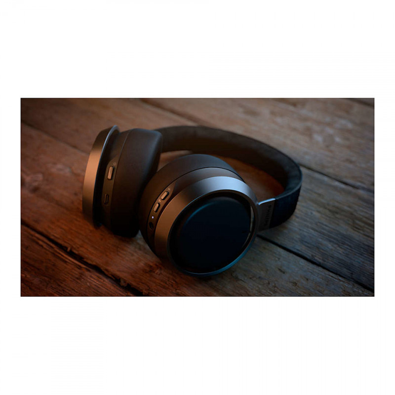 Lightweight aluminium and responsibly sourced Muirhead leather ensure that these wireless headphones feel as premium as the sound. The aluminium of the ear-cup rings is in matte dark satin, with embossed Philips Fidelio branding. The music pauses automatically when you take the headphones off.