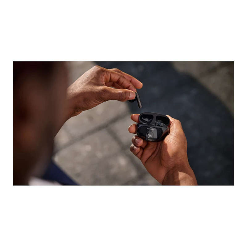 Noise cancelling quietens external noise, including wind, so you can focus on your tunes or calls. Leave it on auto or use the Philips Headphones app to adjust it. Want to hear more of what's going on around you? Tap an earbud to activate Awareness Mode.