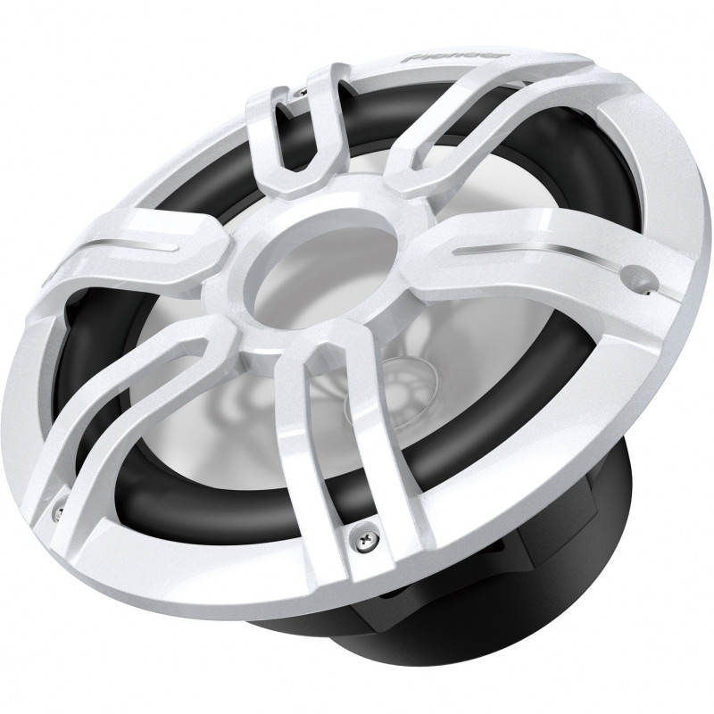"Pioneer TS-ME100WS. Peak power: 900 W, Rated power: 300 W, Impedance: 4 Ω"\n"10″ Marine Component Subwoofer with 900 Watts Max and Sports Grille Design