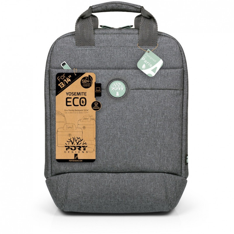 "Port Designs YOSEMITE Eco. Case type: Backpack, Maximum screen size: 35.6 cm (14""), Carrying handle(s), Shoulder strap. Weight: 530 g. Surface coloration: Monochromatic"\n"PORT Designs precursor of IT ECO manufacturers : First eco range launched in 2009. PORT corporate philosophy aims to reduce our carbon footprint & implement a sustainable approach of social and environmental responsibility. With over 30 million bags sold, it is our duty to act for the planet and contribute to reduce our clients’ footprint with an eco range.The YOSEMITE ECO RANGE is mainly made of recycled materials (PET & r-PET). The use of these materials contributes to reduce our carbon footprint and act positively for the environment.