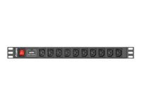 LANBERG PDU-10I-0200-IEC-BK PDU 1U 10A 10 sockets IEC C13 2m Black