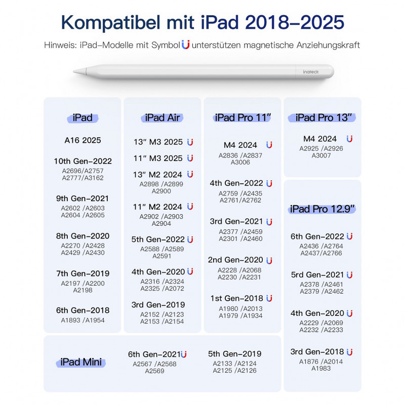 inateck Stylus Pen für iPad Pro/Mini/6-10 Eingabestift weiß