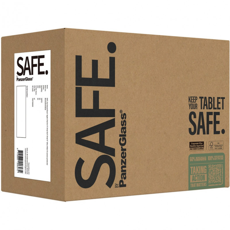 "PanzerGlass SAFE. by ® Screen Protector iPad Air 11'' (2024-2025) | iPad 10.9'' (2022) | Ultra-Wide Fit. Brand compatibility: Apple, Compatibility: Apple - iPad Air 11"" (2024), Apple - iPad 10.9"" (2022), Apple - iPad Air 11"" (2025), Apple - iPad.... Dry application. Protection features: Scratch resistant, Shock resistant. Material: Tempered glass, Polyethylene terephthalate (PET), Silicone, Product colour: Transparent. Quantity per pack: 10 pc(s)"\n"Keep your tablet safe from screen-smashing streaming, couch-chilling catastrophes, and other tablet-totaling tragedies with an original screen protector from SAFE. by PanzerGlass®️. Made from 60% recycled glass, the tempered glass acts as a discrete airbag, protecting your tablet by absorbing impact and providing a high level of scratch protection without compromising the functionality and look of your device.