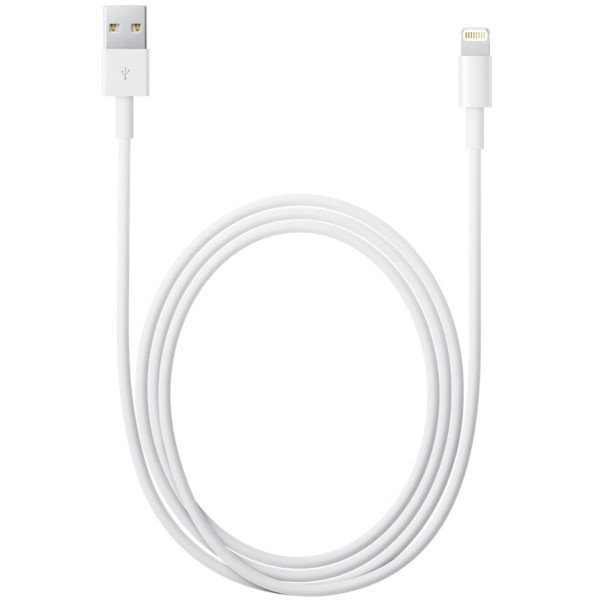 "Apple Lightning to USB Cable (2 m). Cable length: 2 m, Connector 1: Lightning, Connector 2: USB A"\n"This 2-metre USB 2.0 cable connects your iPhone, iPad or iPod with Lightning connector to your computer’s USB port for syncing and charging or to the Apple USB Power Adapter for convenient charging from a power point."