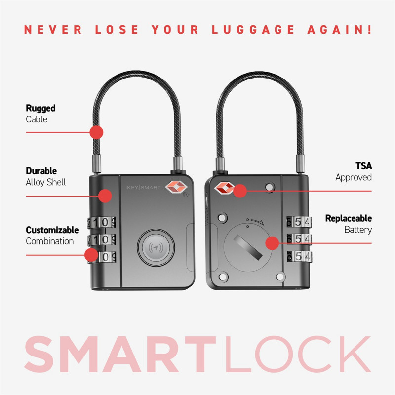 KEYSMART SmartLock; TSA Approved Find My Lock, Black