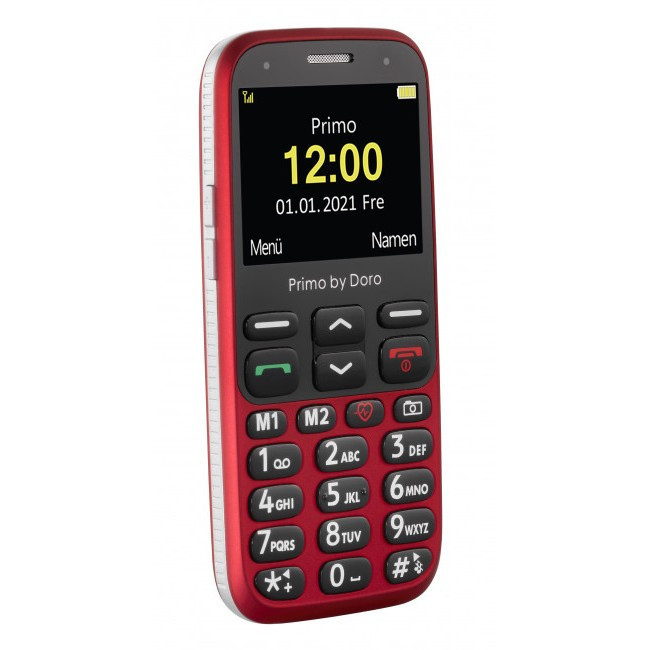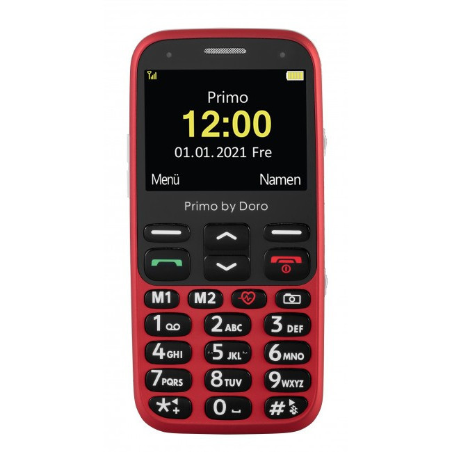 "Doro Primo 368. Form factor: Bar. SIM card capability: Single SIM. Display diagonal: 5.84 cm (2.3""), Display resolution: 320 x 240 pixels. Rear camera resolution (numeric): 3 MP. Wi-Fi. Bluetooth. FM radio. Battery technology: Lithium-Ion (Li-Ion), Battery capacity: 1000 mAh, Standby time (2G): 240 h. Weight: 92 g. Product colour: Black, Red"\n