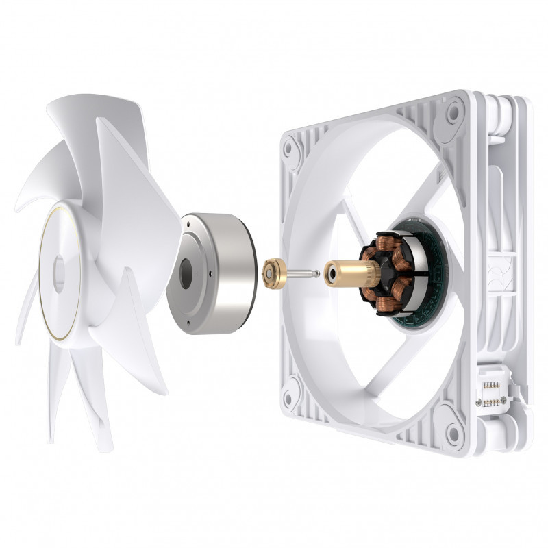The ProArt PF120 fan delivers superior cooling with premium quality and design for unmatched reliability . Boasting a 28mm frame, powerful 3-phase and 6-pole motor, CNC-milled brass bearing housing, reinforced Liquid Crystal Polymer (LCP) blades, and patented daisy-chain connectors to streamline installation and cable management, the ProArt PF120 is the ideal choice for users who demand peak performance and effortless integration."