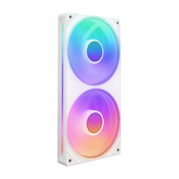 "NZXT RF-U24HF-W1. Type: Fan, Rotational speed (min): 500 RPM, Rotational speed (max): 2400 RPM, Maximum air pressure: 3.3 mmH2O, Bearing type: Fluid Dynamic Bearing (FDB). Width: 120 mm, Depth: 26 mm, Height: 240 mm. Product colour: White"\n"NZXT F Series RGB Core single-frame fans seamlessly integrate multiple fans for effortless installation while offering superior cooling, whisper-quiet performance, and striking RGB visuals.