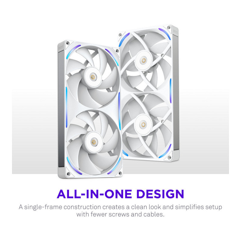 - Digital Control: Fine-tune fan speeds and RGB lighting effects through NZXT CAM* or motherboard software. *Requires NZXT Control Hub or NZXT motherboard required, sold separately.