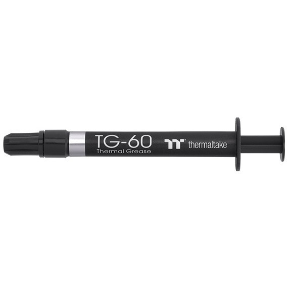 "Thermaltake TG-60. Type: Thermal paste, Thermal conductivity: 52 W/m·K, Product colour: Black. Weight: 1 g. Quantity per pack: 1 pc(s)"\n"TG-60 Liquid Metal Compound is Thermaltake’s first liquid metal compound with high thermal conductivity of