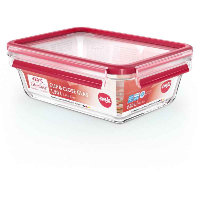Emsa N10410 Clip & Close Glas Frischhaltedose 1.3 L Transparent/Rot