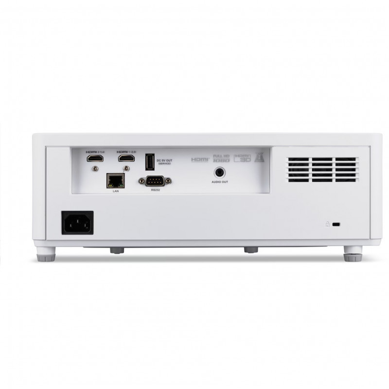 "Acer Large Venue PL6520. Projector brightness: 6000 ANSI lumens, Projection technology: DLP, Projector native resolution: 1080p (1920x1080). Light source type: Laser, Service life of light source: 20000 h, Service life of light source (economic mode): 30000 h. Focus: Manual, Focal length range: 17.63 - 27.90 mm, Aperture range (F-F): 2.3 - 3. Serial interface type: RS-232, HDMI version: 1.4b/2.0. Noise level: 33 dB, Noise level (economic mode): 27 dB"\n