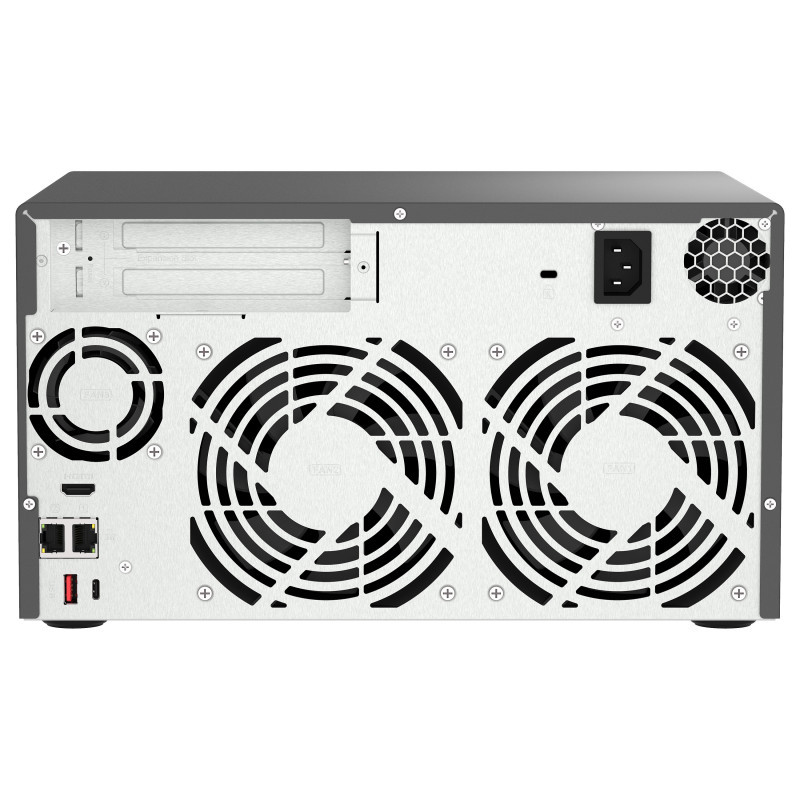 With an Intel® Core™ multicore-core Processor to support the ZFS-based QuTS hero operating system, the TVS-h874 SMB NAS ensures data integrity and supports block-level inline data deduplication and compression, near-limitless snapshots, real-time SnapSync, and SSD optimization. Whether for mission-critical file servers, virtualization servers, collaborative video editing, or efficient data backup and recovery applications, the TVS-h874 delivers an ideal NAS solution. The high-performance TVS-h874 provides PCIe Gen 4 (up to twice the transmission speed of Gen 3) expandability, M.2 NVMe SSD caching, and 2.5GbE/10GbE connectivity for high-speed virtualization network environments.