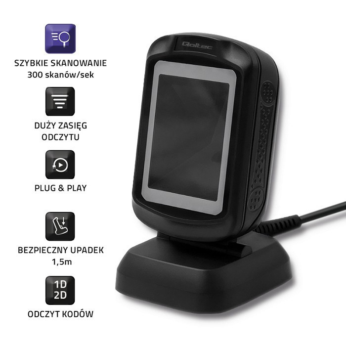 Qoltec 50864 Stacionarus 1D ir 2D kodų skaitytuvas | USB