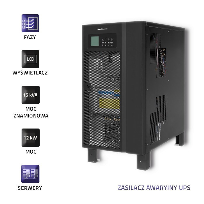 Qoltec 53949 Nepertraukiamo maitinimo šaltinis 3 fazių UPS | 15KVA | 12kW | LCD