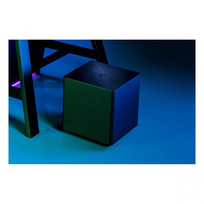"Razer Leviathan V2. RMS rated power: 65 W. Soundbar speaker RMS power: 65 W, Tweeter diameter: 2 cm, Full-range driver diameter: 9.5 cm. Subwoofer frequency range: 45 - 20000 Hz. Product colour: Black, Country of origin: China. Connectivity technology: Wireless"\n"ILLUMINATE YOUR SOUND