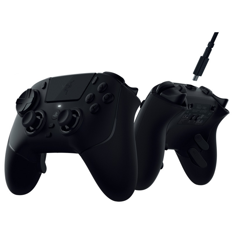 "Razer Raiju V3 Pro. Device type: Gamepad, Gaming platforms supported: PC, PlayStation 5, Gaming control function buttons: Back button, D-pad, Microphone mute button, Mode button, Options button. Connectivity technology: Wired & Wireless, Device interface: RF/USB, USB connector type: USB Type-C. Product colour: Black, Cable length: 2 m. Power source: Cable/Battery, Battery type: Built-in, Battery life (max): 36 h. Windows operating systems supported: Windows 11"\n"RAZER RAIJU V3 PRO