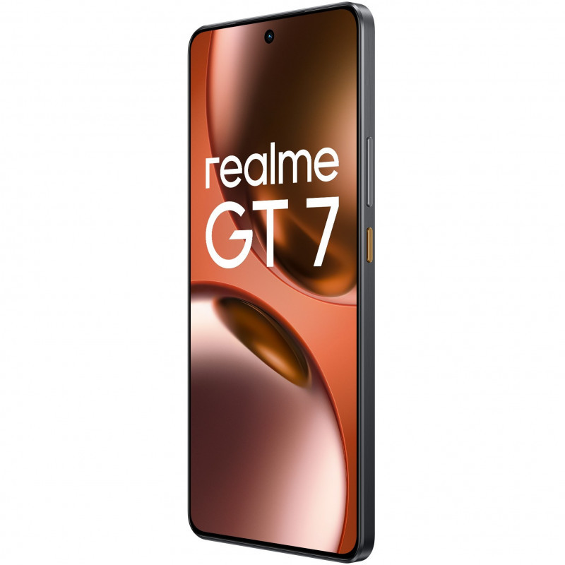 "realme GT 7. Display diagonal: 17.2 cm (6.78""), Display resolution: 2780 x 1264 pixels. Processor family: MediaTek Dimensity. RAM capacity: 12 GB, Internal storage capacity: 256 GB. Rear camera resolution (numeric): 50 MP, Rear camera type: Triple camera. SIM card capability: Dual SIM. Operating system installed: Android 15. Battery capacity: 7000 mAh. Product colour: Black"\n