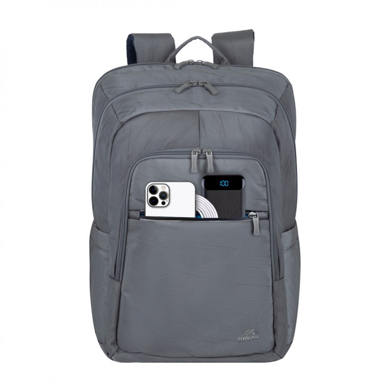 RIVACASE 7569 Nešiojamojo kompiuterio kuprinė 17,3" Alpendorf ECO, pilka, vandeniui atspari medžiaga, eco rPet, kišenės išmaniajam telefonui, dokumentams, priedams, šoninė kišenė buteliui