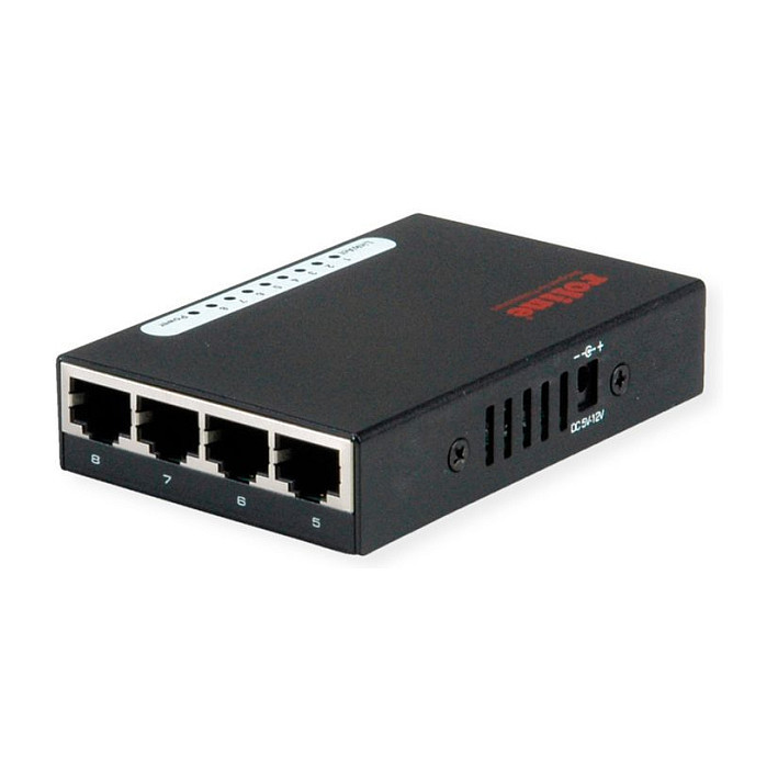 "ROLINE 21.14.3530. Basic switching RJ-45 Ethernet ports type: Gigabit Ethernet (10/100/1000), Basic switching RJ-45 Ethernet ports quantity: 8. MAC address table: 8000 entries. DC input voltage: 5 V"\n"This product is compact in size, making it ideal for SOHO users with limited space to strengthen its network connection."