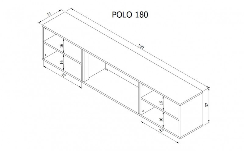 RTV spintelė POLO 180x33x39 juoda + židinys juodas