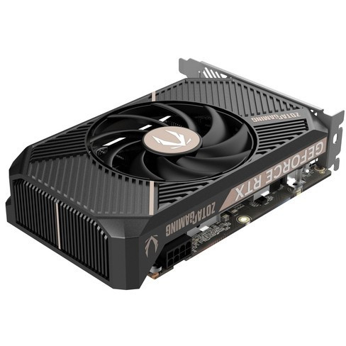 "Zotac GAMING GeForce RTX 5050 SOLO. Graphics processor family: NVIDIA, Graphics processor: GeForce RTX 5050. Discrete graphics card memory: 8 GB, Graphics card memory type: GDDR6, Memory bus: 128 bit. Maximum resolution: 7680 x 4320 pixels. DirectX version: 12 Ultimate, OpenGL version: 4.6. Interface type: PCI Express x8 5.0. Cooling type: Active, Number of fans: 1 fan(s)"\n"The ZOTAC GAMING GeForce RTX 5050 SOLO is a super compact graphics card powered by NVIDIA‘s cutting edge Blackwell Architecture, DLSS4 and 8GB of GDDR6 memory. With a single-fan and a dual-slot footprint, the SOLO is ready to deliver big performance in a minuscule footprint.