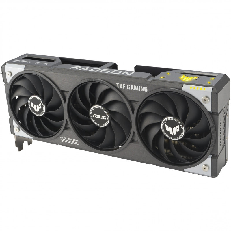 "ASUS TUF Gaming TUF-RX9060XT-O16G-GAMING. Graphics processor family: AMD, Graphics processor: Radeon RX 9060 XT. Discrete graphics card memory: 16 GB, Graphics card memory type: GDDR6, Memory bus: 128 bit. Maximum resolution: 7680 x 4320 pixels. OpenGL version: 4.6. Interface type: PCI Express 5.0. Cooling type: Active, Number of fans: 3 fan(s), Illumination colour: Multi"\n"ASUS TUF Gaming Radeon™ RX 9060 XT