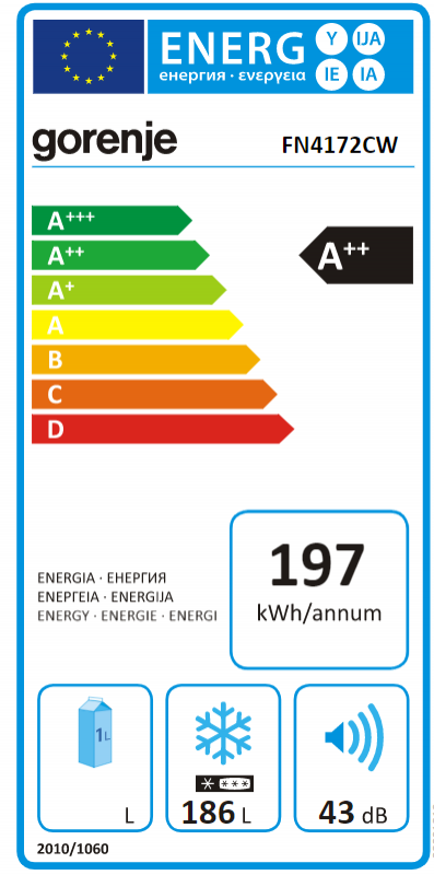 Gorenje | Freezer | FN4172CW | Energy efficiency class E | Upright | Free standing | Height 169.1 cm | Total net capacity 194 L | No Frost system | White