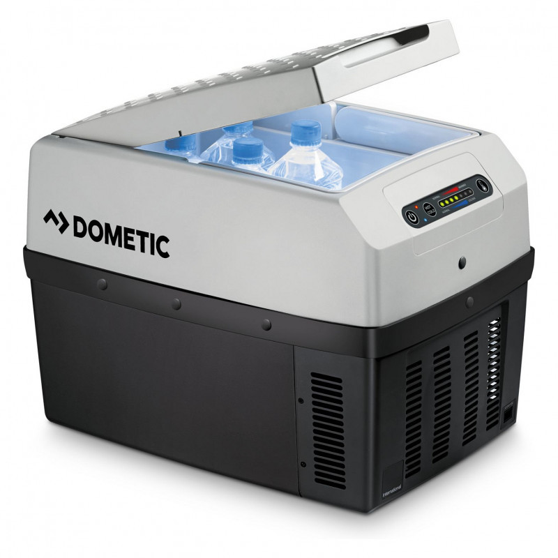 "Dometic TropiCool TCX 14. Product colour: Black, Grey. Capacity: 14 L, Insulation performance (delta versus ambient temperature): 27 °C, Noise level: 41 dB. Power source: Electric, Power source type: AC, DC, Power: 64 W. Width: 303 mm, Depth: 540 mm, Height: 328 mm. Package width: 320 mm, Package depth: 470 mm, Package height: 350 mm"\n