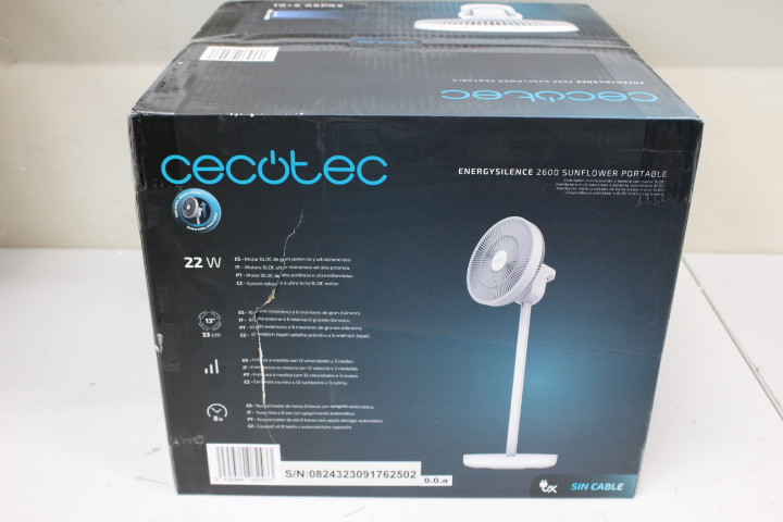 SALE OUT. Cecotec EnergySilence 2600 Sunflower Portable Battery-powered fan | Cecotec EnergySilence 2600 Sunflower Portable | Stand Fan | DAMAGED PACKAGING | Diameter 33 cm | Number of speeds 12 | Oscillation | 22 W | Remote control