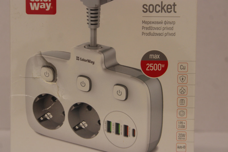 SALE OUT. ColorWay CW-CHE24PDW Power Socket: 2xEU plugs/3xUSB-A/1xUSB-C White 2.5M | ColorWay Power Socket | CW-CHE24PDW | DAMAGED PACKAGING