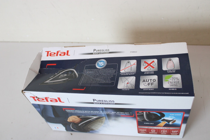 SALE OUT. Tefal FV8062 Puregliss Iron , Black/Grey | TEFAL FV8062 Puregliss | Steam Iron | 3000 W | Water tank capacity 0.27 ml | Continuous steam 50 g/min | Steam boost performance 280 g/min | Black/Grey | DAMAGED PACKAGING, SCRATCHED ON FRONT