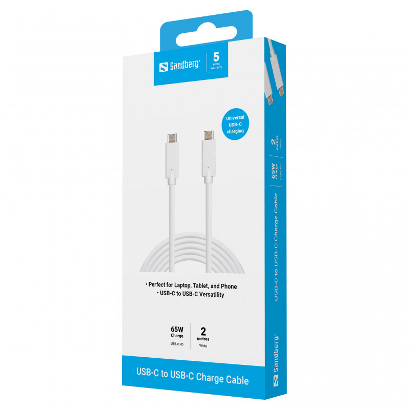 Sandberg USB-C (ST-ST) 2m Anschlusskabel Weiß