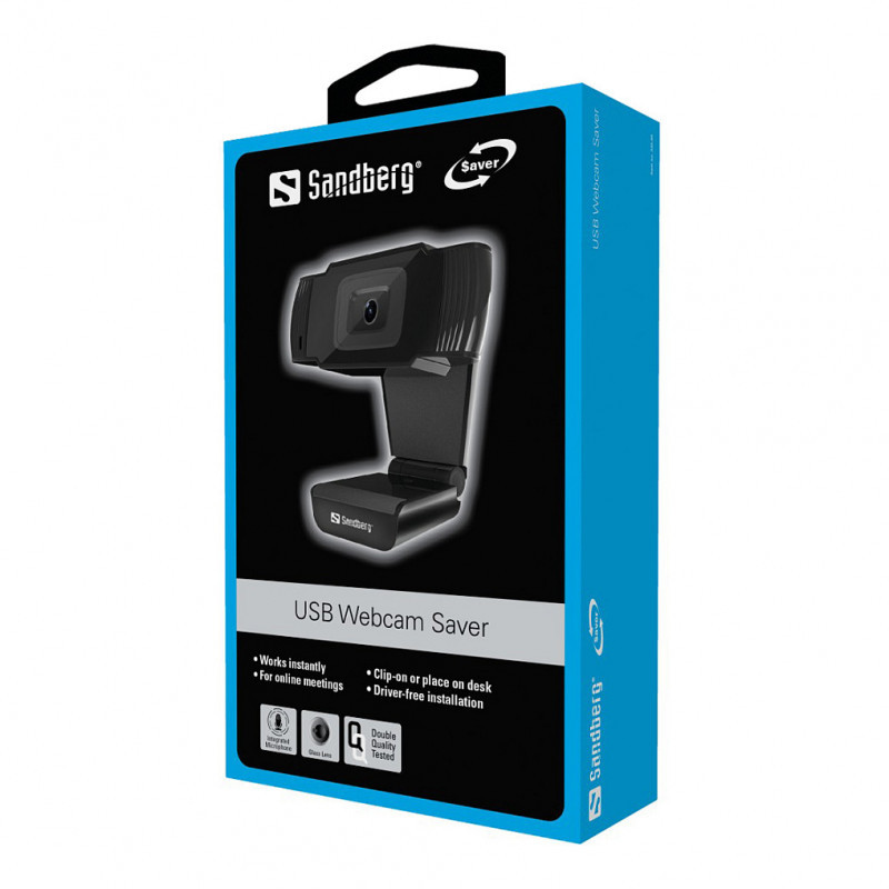 "Sandberg USB Webcam 480P Saver. Megapixel (approx.): 0.3 MP, Maximum video resolution: 640 x 480 pixels, Maximum frame rate: 30 fps. Interface: USB 2.0, Product colour: Black, Sensor type: CMOS. Windows operating systems supported: Windows 10, Windows 2000, Windows 7, Windows 8, Windows Vista, Windows XP. Width: 80 mm, Depth: 80 mm, Height: 30 mm. Package type: Box, Package width: 120 mm, Package depth: 70 mm"\n"Sandberg USB Webcam Saver is perfect for online meetings. It works instantly without driver installation. The camera sits on a clamp to attach the camera easily on a laptop screen and the like. The camera features also microphone."