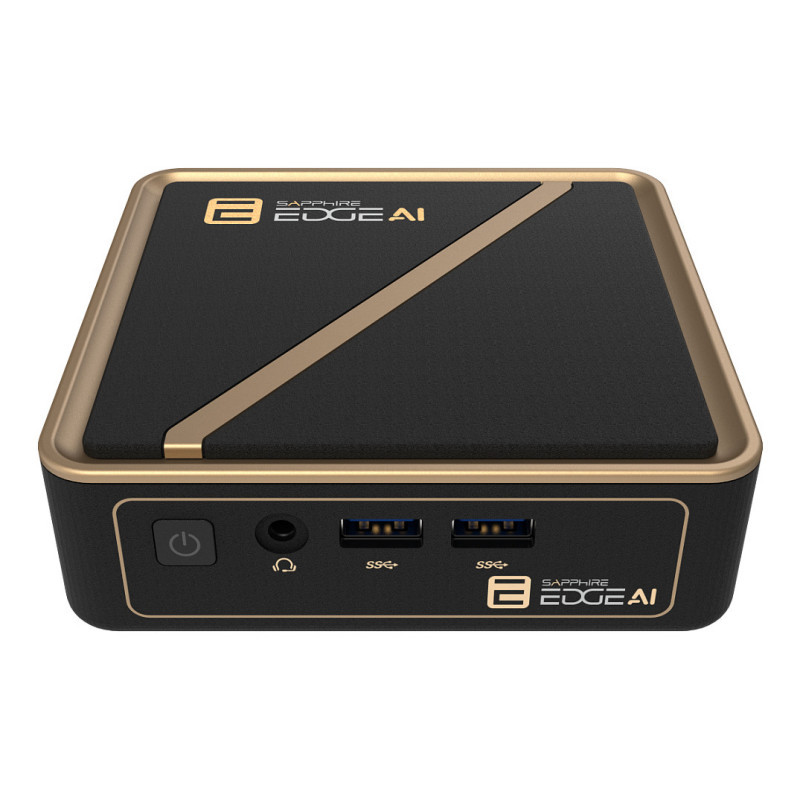 "Sapphire EDGE AI 370. Chassis type: SFF, Product type: Mini PC barebone. Processor socket: FP8. Supported memory types: DDR5-SDRAM, Number of memory slots: 2, Maximum internal memory: 96 GB. Supported storage drive types: SSD, Storage drive interface: PCI Express. Ethernet LAN (RJ-45) ports: 1. Power supply: 120 W"\n"SAPPHIRE EDGE AI™ Series Designed to Elevate Productivity and Creativity on Your PC