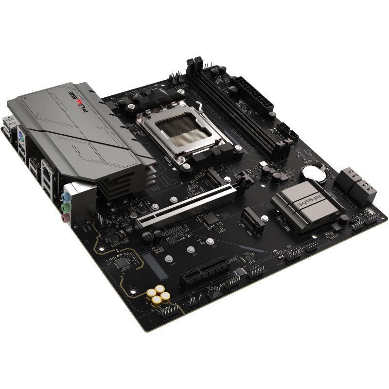 "Sapphire PULSE A620AM. Processor manufacturer: AMD, Processor socket: Socket AM5, Compatible processor series: AMD Ryzen 7000 Series, AMD Ryzen 8000 Series, AMD Ryzen 9000 Series. Supported memory types: DDR5-SDRAM, Maximum internal memory: 64 GB, Memory slots type: DIMM. Supported storage drive interfaces: PCI Express 3.0, PCI Express 4.0, SATA III, Supported storage drive types: HDD & SSD. USB connector type: USB Type-A. Ethernet interface type: Gigabit Ethernet, LAN controller: Realtek RTL8111K"\n