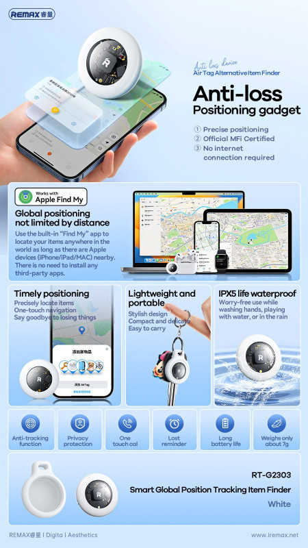 Daiktų ieškiklis Remax RT-G2303 Anti-Lost Device baltas