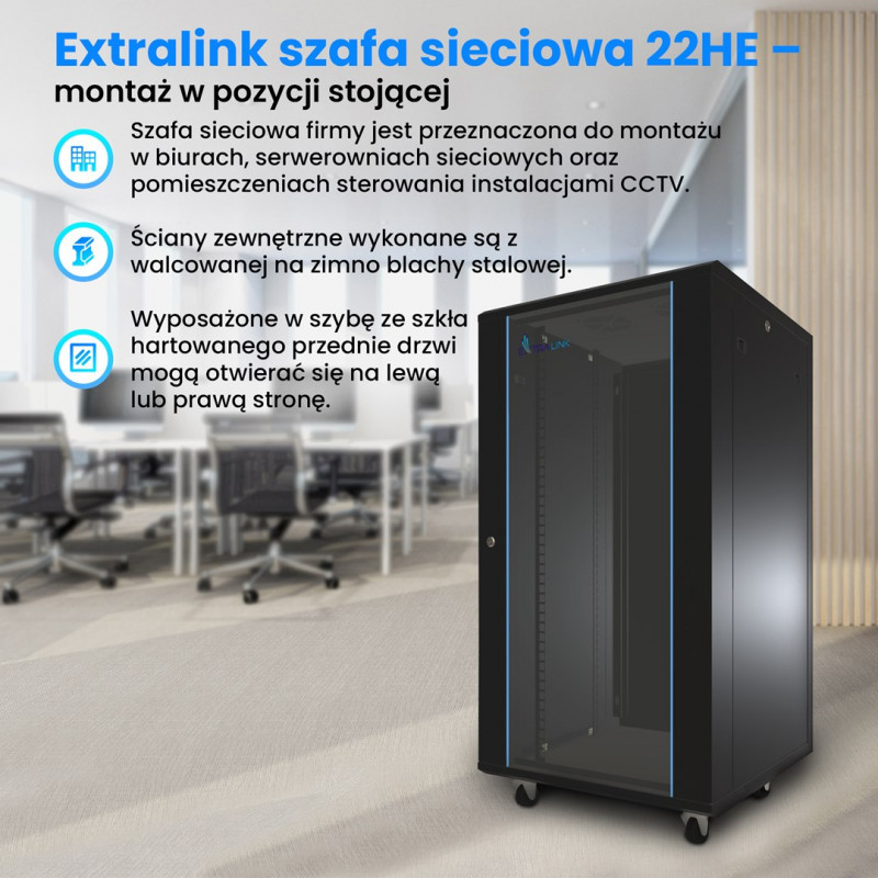 Serverių spintos | Extralink EX.14398 lentyna 22U Atskiras stovas Juoda