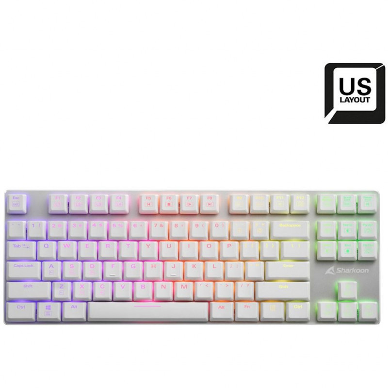 "Sharkoon PureWriter TKL RGB Red. Keyboard style: Straight. Connectivity technology: Wired, Device interface: USB, Keyboard key switch: Mechanical, Keyboard layout: QWERTY. Backlight type: LED. Cable length: 1.5 m. Recommended usage: Gaming. Product colour: White"\n"The PureWriter TKL RGB is an ultra-compact keyboard without a number block, which has been designed for a variety of uses and a high degree of mobility. Gamers will appreciate the steplessly adjustable RGB illumination as well as features which are essential for gaming. Prolific writers will be impressed by the elegant design and, above all, by the excellent typing experience thanks to the ultra-flat keys. For mobile use, the keyboard is especially light, and the two detachable cables with different lengths allow the perfect connection wherever it is taken. For maximum user-friendliness, all the functions of the PureWriter TKL RGB can be used without having to download any software.