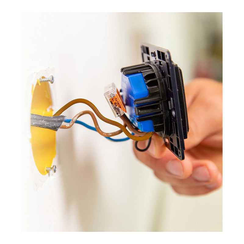 "Shelly Wall Switch 2. Control type: Buttons, Product colour: Black, Compatibility: Shelly 2,5, Shelly 1L, Shelly Dimmer 2, Shelly Plus Series. Width: 80 mm, Depth: 80 mm"\n"The 2 buttons switch comes with attachable relay holders. Shelly Wall Switch for Smart Relays can fit into any existing wall switch console or even the tiniest spaces, due to its compact dimensions and simple wiring."