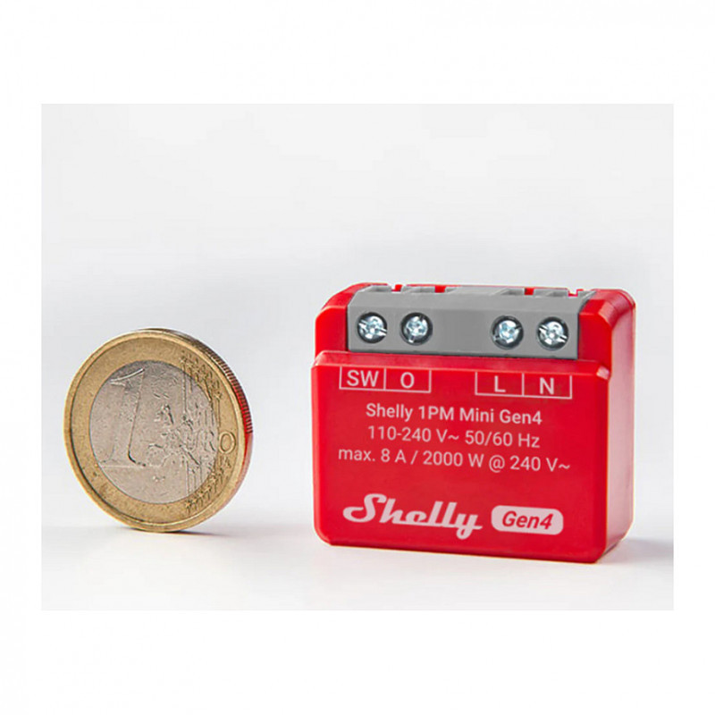 "Shelly 1PM Mini Gen4. Type: Smart switch, Connectivity technology: Wireless, Housing material: Plastic. AC input voltage: 110 - 240 V, AC input frequency: 50 - 60 Hz, Maximum switching voltage (AC): 240 V. Width: 34 mm, Depth: 16 mm, Height: 29 mm. Quantity per pack: 1 pc(s)"\n