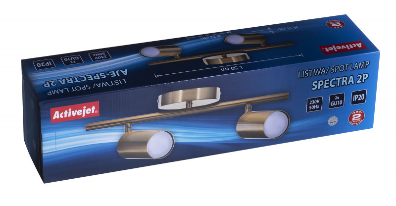 Activejet SPECTRA dvigubas auksinis lubų sieninis šviestuvas juostinis prožektorius GU10 gyvenamajam kambariui