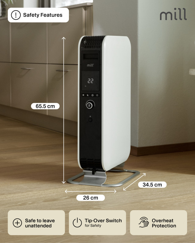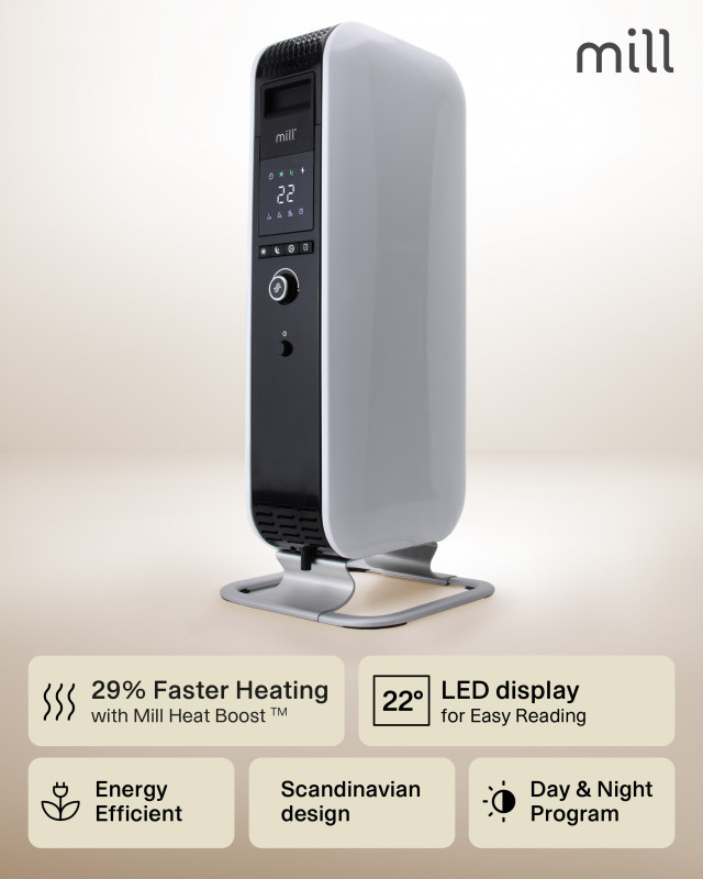 Compared to ordinary oil filled radiators, our Mill Oil series are much more effective because of the closed structure of the heater which makes a unique chimney effect (patented “Heat boost” technology). For instance, our Mill Oil 1000W is as effective as a normal oil filled radiator with 2000W. |