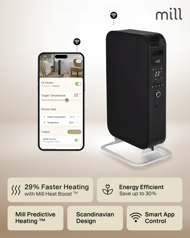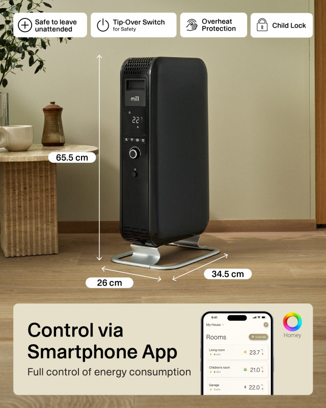Mill | Heater | OIL1500WIFI3 Gentle Air | Oil Filled Radiator | 1500 W | Suitable for rooms up to 22 m² | Black